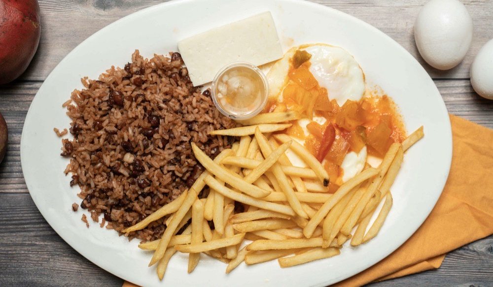 Sampler of all our most popular foods comes with gallo pinto, vigoron, carne asada, cerdo Frito, chorizo, tajadas, maduros, tacos, frijoles molidos, alitas de pollo and coleslaw.